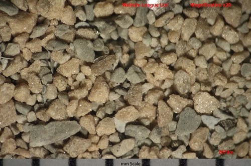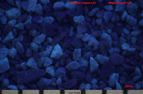 Shown here are a two example sample photograph showing the cuttings from the reservoir interval both under normal and UV light to highlight the hydrocarbon shows.